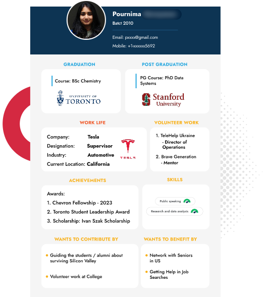 We gather alumni data through a blend of Artificial Intelligence and Human Diligence efforts. From widespread scanning of social media profiles, leveraging search engines, accessing institutional databases, news platforms to targeted digital campaigns, we compile a thorough alumni database for your institution.