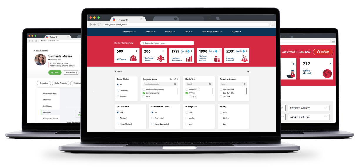 Expecting the alumni to contribute, without putting in the required time and effort to understand their motivations, leads to major gaps in the alumni institute relations. Univariety helps you bridge these gaps seamlessly.
