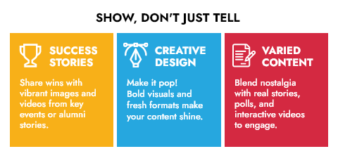 To truly captivate your alumni and keep them engaged, it’s not enough to just tell them what your school has accomplished you need to show them. Visual storytelling is more powerful than ever, and showcasing real alumni achievements can make your messages way more compelling than others-